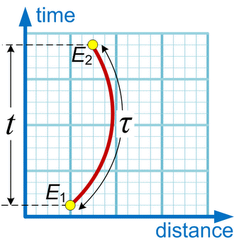 In relativity, proper time is the elapsed time between two events as measured by a clock that passes through both events. The proper time depends not only on the events but also on the motion of the clock between the events. An accelerated clock will measure a...